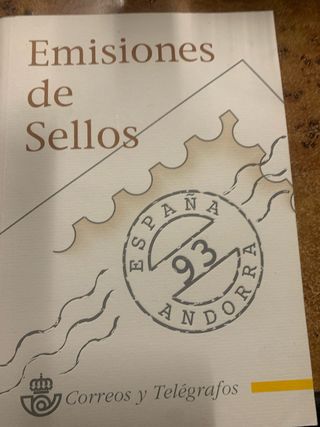 Catálogo de emisiones de sellos de España y Andorra del año 1993.con sus sellos solo embio por correos por no tener punto impost - Portada con diseño de matasellos. - Incluye información sobre sellos de España. - Incluye información sobre sellos de Andorra. - Año de publicación: 1993.