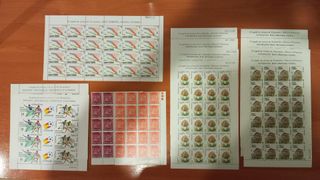 Todos los sellos antes espuestos : Año 1982 Edifil no 149. 7 pts. Naranja. 20 Sellos. Año 1986 Edifil no 150. 12 pts. Rojo oscuro. 20 Sellos. Año 1982 Edifil no 158. Copa Mundial de fútbol. España 82. 2 pliegos. Año 1984 Edifil no 176. 16 pts. Salto. Juegos Olimpicos de Sarajevo y Los Ángeles. 1 Pliego. Año 1984 Edifil no 181. Naturaleza. 4 pliegos. Año 1986 Edifil no 190. Naturaleza. 4 pliegos.