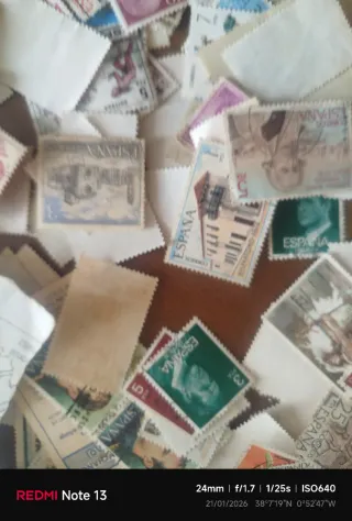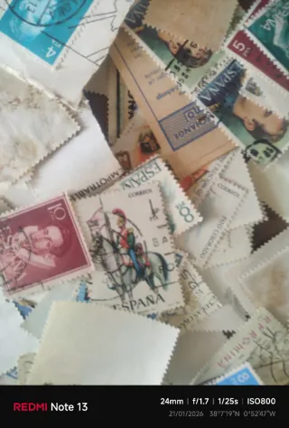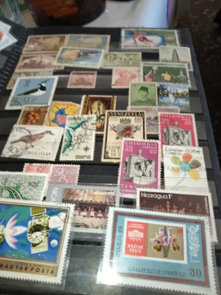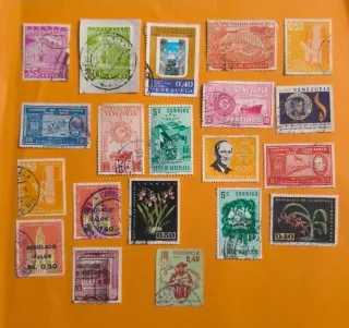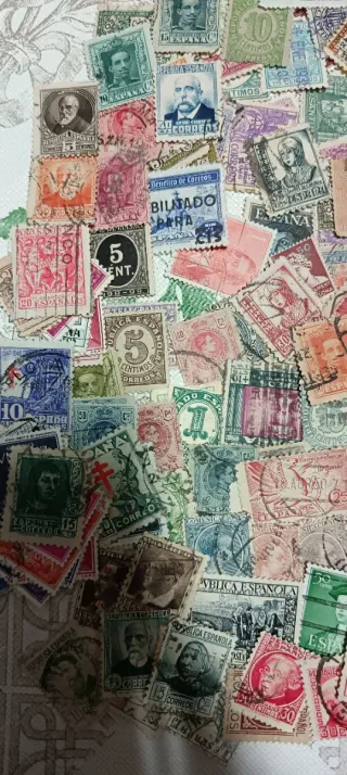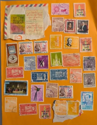 Colección de sellos antiguos de diferentes países y épocas. Ideal para coleccionistas. - Incluye sellos de España, Venezuela y otros. - Variedad de diseños y valores. - Perfectos para ampliar tu colección.