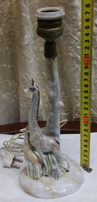 Lámpara de mesa vintage con diseño de jirafas de Lladró. Pieza con sello antiguo. - Figura de dos jirafas y un árbol. - Base de cerámica. - Incluye cable y enchufe.