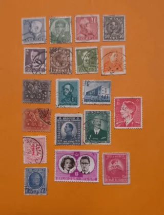 Colección de sellos antiguos de varios países europeos. - Sellos de Suecia (Sverige). - Sellos de Dinamarca (Danmark). - Sellos de Portugal. - Sellos de Hungría (Magyarorszag). - Sellos de Noruega (Norge). - Sellos de Yugoslavia (Kraljevstvo Srba Hrvata i Slovenaca). - Sellos de Bélgica (Belgique/Belgie). - Sello de Bélgica Antártico.