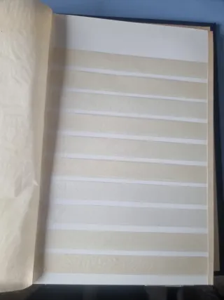 Clasificador de sellos con cubierta azul y detalles dorados marca Gacela de 24 hojas 48 páginas que ha conocido tiempos mejores incluye 5000 sellos granel un libro de Alemania 2002 nuevo con filoestuches pero sin sellos y 40 hojas bloque la mayoría sin matasellar y entre ellas se incluye la de Michael Jackson y las de Tema Europa de Chipre.Y algún detalle adicional.Precio no negociable es un buen pack.Aunque habrá muchos sellos repetidos también variedad de temas y antiguos y modernos. - Cubierta de material sintético. - Dos líneas decorativas doradas en la portada. - Pequeño emblema dorado en la parte inferior izquierda.