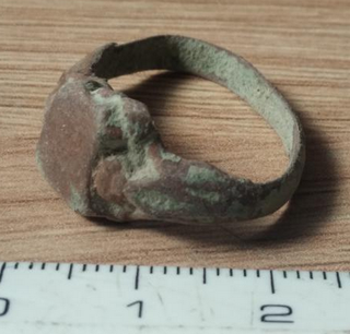 Antiguo anillo sello de cobre, datado del siglo XIX. Una pieza con historia. - Material: Cobre. - Para limpiar y clasificar. ref:cazul11