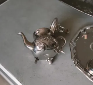 Elegante tetera antigua de plata con sello Mounti. Su diseño clásico y detalles ornamentales, grabados intrincados y detalles en relieve, le hacen una pieza decorativa. - Material: Plata - Sello: Mounti - Diseño: Clásico con ornamentos