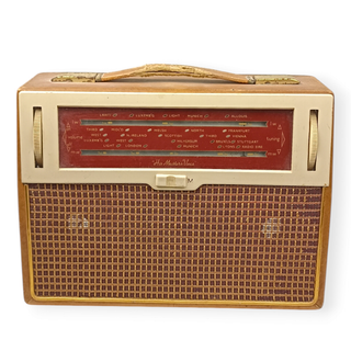 Fantástica y evocadora radio antigua HMV modelo 1417. Serie nº duplicate 19002. His Master's Voice (HMV) más conocida en español como ""La Voz de Su Amo"" fue el nombre informal de un importante sello discográfico británico creado en 1901 por The Gramophone Co. Ltd. Características: - Número de transistores: 6 -Semiconductores: OC44 OC45 OC45 OC78D OC78 OC78 - Superheterodino en general; ZF/IF 470 kHz; 2 Etapas de AF - Número de circuitos sintonía: 6 Circuítos (s) AM - Gama de ondas:OM y OL - Tensión de funcionamiento: Pilas / 2 × 6 Volt - Altavoz dinámico (de imán permanente) - de Radiomuseum.org - Modelo: 1417 - HMV...