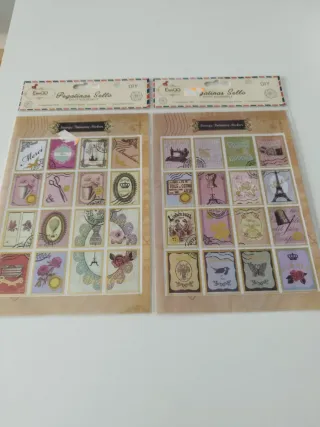 Set de pegatinas con diseño de sellos postales antiguos. - Estilo vintage y retro. - Ideal para manualidades y scrapbooking. - Varios diseños temáticos.