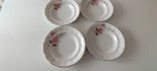 4 Platos hondos Antiguos de Loza Fina con dibujo.