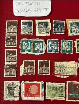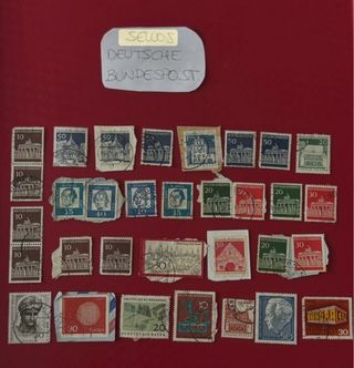 Lote de sellos de Alemania Federal de las décadas de 1950 y 1960. Incluye una variedad de diseños y valores. Lote de sellos antiguos de Alemania Federal – Deutsche Bundespost (años 50–60) Colección de sellos usados originales de Alemania Federal (Deutsche Bundespost), datados entre los años 1951 y 1969. Incluye sellos de monumentos históricos, edificios emblemáticos, personajes célebres, naturaleza y serie Europa (CEPT). ✔️ Sellos auténticos ✔️ Estado usado ✔️ Ideal para coleccionistas principiantes o como lote histórico ✔️ Se envía el lote completo, tal como aparece en las fotos