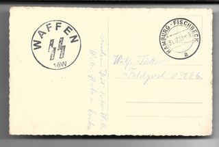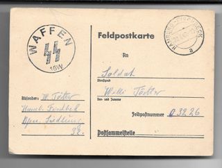 Postal Original WWII - SEGUNDA GUERRA MUNDIAL Se ofrece una Postal original de la época del III Reich alemán. Es un documento antiguo y muestra señales de desgaste por el paso del tiempo. PRECIO NO NEGOCIABLE - Alemana Nazi III Reich Swastika - Sello postal del Reich Alemán. - Sello de la Waffen-Grenadier-Division der SS. - Escritura a mano en alemán. Solamente se exponen como artículos históricos coleccionables, en base a su interés para colecciones privadas filatélica.