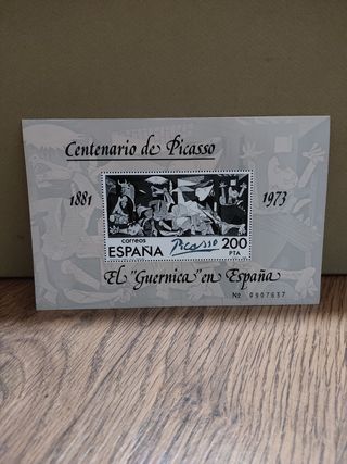 Bonito sello especial 100 Aniversario de Picasso con el Guernica. antiguo sello en hoja numerada, está nuevo, como recién salido de la fábrica, para coleccionistas de sellos, aficionados a lo vintage o al arte. Se puede enviar por correo ordinario que sale a 1€