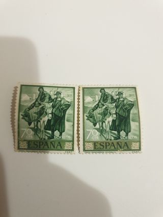 Se venden dos sellos antiguos de España. Son de 70 céntimos de peseta y representan tipos manchegos, pintados por Sorolla. Los sellos están en buen estado de conservación, aunque muestran señales normales del paso del tiempo. - Dos sellos de correos españoles. - Temática: Tipos Manchegos (Sorolla). - Valor facial: 70 céntimos.