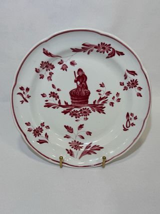 Plato de loza francesa original de Longchamp, con decoración tradicional en rojo burdeos. Lleva el sello “Décor Inaltérable – Façon Main”, pintado a mano, fabricado entre los años 70 y 90. En muy buen estado de conservación. Por favor, revise bien las fotografías, ya que son parte importante de la descripción. 📏 Medidas: 23,5 cm de diámetro Perfecto para coleccionistas, amantes de la decoración vintage o para dar un toque especial a una mesa con historia.