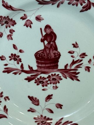 Preciosos platos de postre o desayuno en loza blanca con decoración burdeos floral. Marca Pickman (La Cartuja de Sevilla), con sello original utilizado entre 1932 y 1965. Ideales para coleccionistas o para dar un toque vintage a la mesa. 🔸 Medidas: 16,5 cm de diámetro 🔸 Fabricados en Sevilla (Made in Spain) 🔸 Buen estado. Por favor, revise bien las fotografías, ya que son parte importante de la descripción. 🔸 Precio por el lote de 3 Entrega en mano o envío con embalaje seguro 📦✨