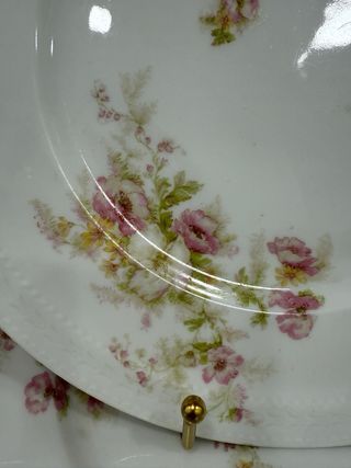 Platos llanos antiguos de porcelana, fabricados en Limoges hacia 1900, con sello Frank Haviland – Kiefer & Cie. Decoración floral Belle Époque, elegante y atemporal. Distribuidos en su época por Kiefer & Cie, casa suiza con sede en Basilea y París que comercializaba porcelana de Limoges a finales del siglo XIX. 3 unidades disponibles, precio por unidad. En muy buen estado, dos de los platos presentan marcas de uso en la parte trasera (ver fotos). No afectan a su función ni a la belleza de la pieza. Dimensiones: 25 cm de diámetro ✨ Piezas con más de 120 años de vida, auténtica porcelana francesa, elegantes y resistentes.