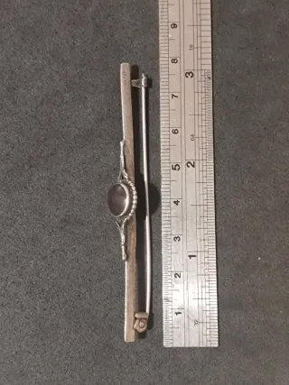 Elegante broche de plata con madera. Su diseño clásico lo hace perfecto para complementar cualquier atuendo. Dispone de sello de Plata, no se si 916 o 918. - Diseño con detalles ornamentales. - Cierre de seguridad. Silver, argent, joya, joyeria, moda, modista, vintage, retro, art deco, art nouveau, elegante, y2k, antigua, renacimiento, renacentista