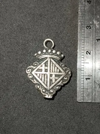 Colgante con diseño a dos caras del escudo de Barcelona. Pequeñito pero muy bonito y macizo. Esta sellado con la estrella de 5 puntas por lo aue es antiguo. - Elaborado en plata. - Presenta un escudo con corona y adornos laterales del escudo de Barcelona. - Antiguo Todas las piezas estan revisadas. Otras en mi perfil. plata, silver, argent, vintage, retro, costura, hilo, moda, modista, diseño, antiguo, y2k, 2009, armadura de dedos, coleccion, coleccionismo, art nouveau, deco, bahuaus, cataluña, catalan, catala