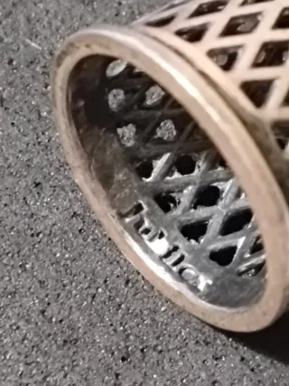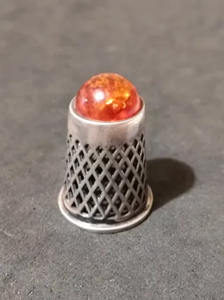 Elegante dedal en Plata de ley y una gema de ámbar en la parte superior. Esta hecho por la firma Jubilox, es antiguo y no la localizo. Creo que es polaco o ucraniano. En el sello pequeño parece poner (25 y FQ en medio una balanza) - Diseño calado con patrón de rombos. - Gema de ámbar de tono anaranjado. Todas las piezas estan revisadas. Otras en mi perfil. Tengo mas dedales. plata, silver, argent, vintage, retro, costura, hilo, moda, modista, diseño, antiguo, y2k, 2009, armadura de dedos, coleccion, coleccionismo, art nouveau, deco, bahuaus