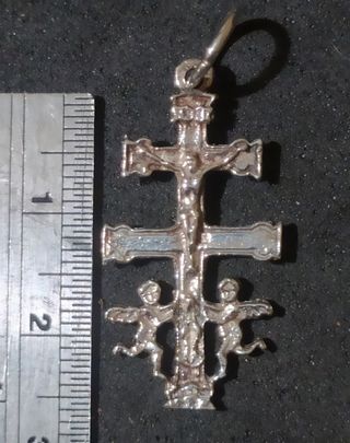Colgante de plata de cruz de caravaca. Esta y las demas cositas del perfil estan revisadas. Esta sellada. Magia, ilusion, feerico, hada, magia, mago, bruja, magica, ilusionismo, vibraciones, reflexion, meditacion, energias, retro, vintage, antiguo, moda, plata, silver, prata, diseño, estilo, angel alado, religion, fe, cristianismo, abraham, beato