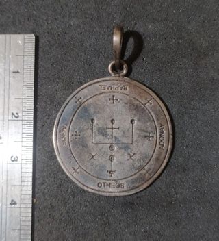 Este es un colgante con el sello del arcángel Rafael, probablemente hecho de plata de ley. El colgante representa el sello del Arcángel Rafael, conocido como el ángel de la sanación y el bienestar. Se cree que usar este tipo de talismán ayuda a conectarse con la energía del arcángel para obtener curación, protección y orientación. Esta y las demas cositas del perfil estan revisadas. Esta sellada. vibraciones, reflexion, meditacion, energias, retro, vintage, antiguo, moda, plata, silver, prata, diseño, estilo, angel alado, religion, fe, cristianismo, abraham, beato