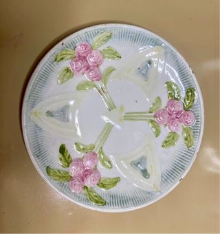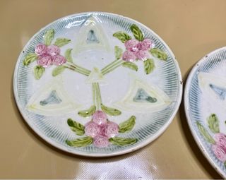 Se venden dos bonitos platos de cerámica estilo mayólica del siglo XIX. Son piezas antiguas con un diseño floral encantador. - Delicados detalles florales en relieve. - Coloración en tonos pastel. - Se aprecian señales del paso del tiempo. Del estilo de Samuel Lear , muy bien conservados para la edad que tienen . no tiene sello ni marca alguna .