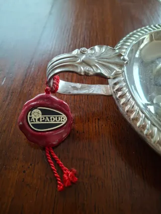 Antigua y rlegante bandeja ovalada de alpaca, perfecta para servir. Diseño clásico y refinado con borde con detalles decorativos. Mide Largo 31 cms y Ancho 19 cms. Sello de Alpaca en parte posterior , ver fotografía.