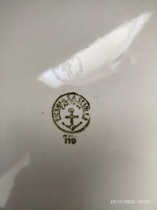 Vajilla antigua exclusiva de La Cartuja de Sevilla de 102 piezas incluye juego de café y juego de té. Cada elemento está decorado con filo de oro y el borde con pequeños resaltes y con una preciosa cenefa de rosas y guirnaldas. Vajilla fabricada el siglo pasado, C 1910-1930 en la prestigiosa casa Pickman de la Cartuja de Sevilla. Lleva estampado en verde el sello de la Cartuja. -Compuesta por 7 Fuentes, 12 Platos de Postre, 12 Platos Hondos, 37 Platos Llanos, 1 Salsera, 2 Soperas, 2 Fruteros y 3 hueveras. Además, un juego de café y otro de té, ambos de seis. - Ideal para añadir un toque elegante. Venta en persona. Esta en Alicante