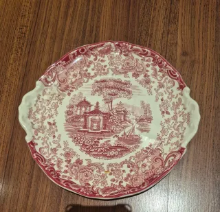 Bandeja con un diseño clásico. Fuente redonda. Porcelana de la prestigiosa firma, La Cartuja de Sevilla. Colección Aurora rosa. Made in Spain. Loza en tono rosa con fondo blanco. Motivos inspirados en el lejano oriente, paisaje oriental, imagenes de casa, barco... Sello en la base. Borde festoneado con detalles florales. Greca. Para aperitivos, merienda, pastas... Fotografías como descripción. Antiguo, vintage... en buen estado, se ha tenido guardada. Medidas: 25 x 27 centímetros aproximadamente. Más artículos de hogar, casa... decoración... en mi perfil