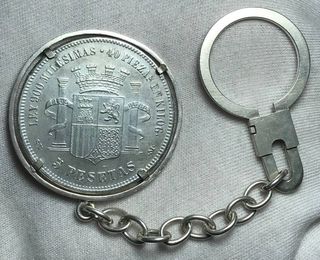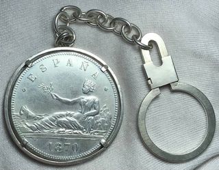 Cinco pesetas del año 1870 de plata engarzadas en un llavero de palta de ley también, la moneda es una réplica de joyería aun así todo de palta de ley, se vende por su precio al peso en plata, tiene un peso de más de 38g, muy bonita pieza Regalo además un fósil de diente de Otodus Obliquus el antepasado del Megalodón Entrega en mano en Málaga o envío a toda España. Más lotes similares en mi perfil *No mirar* Monedas antiguas, numismática, lote chimenea cadena metales sellos llaveros fósiles militar coche piso fusil guerra civíl pieza garaje puerta navidad lluvia paraguas pc patinete enchufe