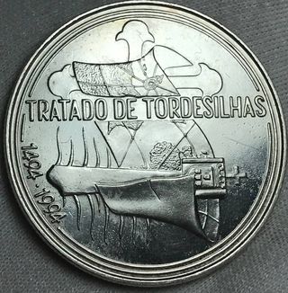 Mil escudos de plata de Portugal acuñados en el 1994 en conmemoración al Tratado de Tordesillas con un peso de 28g, se vende por su precio al peso en plata, muy bonita pieza Regalo además un fósil de diente de Otodus Obliquus el antepasado del Megalodón Entrega en mano en Málaga o envío a toda España. Más lotes similares en mi perfil *No mirar* Monedas antiguas, numismática, lote chimenea cadena metales sellos llaveros fósiles militar coche piso fusil guerra civíl pieza garaje puerta navidad lluvia paraguas pc patinete enchufe
