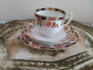 Antiguo Phoenix China Imari Trio Porcelana Hueso