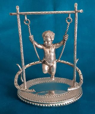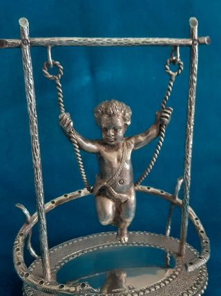 Antiguo PALILLERO, estilo ART DECÓ, de PLATA MENESES (ver foto del sello acreditativo). Figura de niño macizo. MEDIDAS: altura máxima: 12,5 cm. Base ovalada: 9,5 x 7 cm. Peso aprox. 250 gramos. EXCELENTE ESTADO DE CONSERVACIÓN como puede apreciarse en las fotos. A recoger en VALENCIA capital o envío a cargo del comprador: pago por BIZUM en envío. ENVÍO POR CORREO CERTIFICADO CON CÓDIGO DE SEGUIMIENTO Y JUSTIFICANTE DE ENVÍO. NO HAGO ENVÍOS POR WALAPOP.