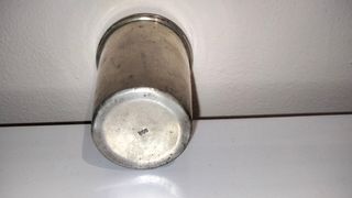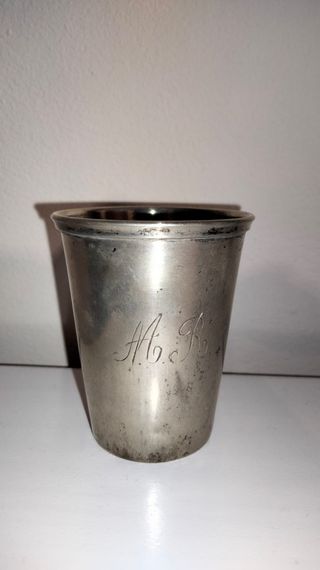 Vaso de plata antiguo de torero, de principios del siglo XX Con iniciales M. R. y sello de plata. Procedencia es de Córdoba. Medidas 6x5 cm.