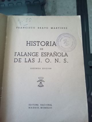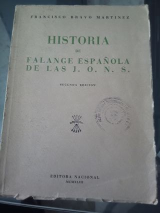 Libro del año 1943 con sello de Falange de la JONS. En su segunda Edición.HISTORIA DE LA FALANGE ESPAÑOLA. EDITORA NACIONAL.
