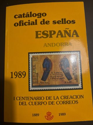Catálogo oficial de sellos de España y Andorra del año 1989. - Cubre el periodo de 1889 a 1989. - Conmemora el I Centenario de la Creación del Cuerpo de Correos.