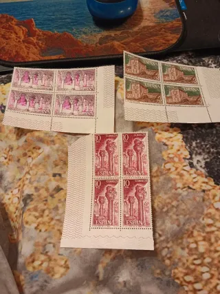 Conjunto de sellos conmemorativos del V Centenario del Descubrimiento de América. - Emisión: V Centenario del Descubrimiento de América. × Valores: 8, 20, 8 y 20 PTA con sobretasa de 5 PTA por sello. - Fecha de emisión: 15 de octubre de 1990. - Formato: 49,8 x 28.8 mm (horizontales). - Procedimiento de estampación: Huecograbado. - Dentado: 13 3/4. - Papel: Estucado engomado fosforescente. 1,10€ × Valores 15, 25,45 y 55 con sobrepasa de 5 Pts por sello - Fecha de emision: 15 de octubre 1991 Formato, procedimiento de estampación, dentado y papel igual al anterior 2,20€ Tengo 3 hojas de cada precio por unidad