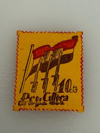 Sello conmemorativo de la 115 Brigada Mixta. - Diseño con banderas y espadas. - Inscripción Pro-Cultura y 115 Brigada Mixta. - Valor 10cts. La aplicación de Wallapop envíos no hace envíos desde Canarias a Peninsula por lo que los envíos gratuitos será por correo ordinario en sobre acorchado y bien protegido. Nunca hemos tenido problemas con el envío ordinario. También envíos por certificado disponible Tiempo estimado 3/4 dias Acepto bizum y transferencia como pago