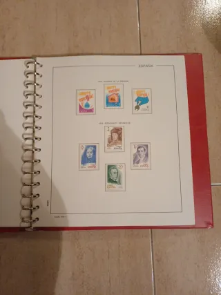 Álbum de Sellos Filabo Edifil Rojo España 1977 - 1978 - 1979 - 1980 - 1981 - 1982 - 1983 - 1984. muy completo, solo faltan algún sello y sobre postal. 63 páginas edifil.