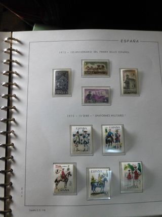 Álbum de sellos de España, años 1975-1979, completo. Adquiridos por suscripción en Lamas Bolaño, Barcelona. Excelente estado. Precio en catálogo 450 €.