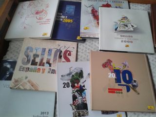 COLECCIÓN 8 libros OFICIALES Correos. ESPAÑA Y ANDORRA. Todos completos, sellos, hojitas y pruebas de artista colocados en filoestuches. VALORES EN EL TIEMPO! También emisiones anuales conjuntas con otros paises e impresiones calcográficas numeradas y limitadas. INCLUIDOS SELLOS DE PLATA! Ideal para tener la colección ordenada, dándole valor y ahorrándose caros suplementos. Son libros de tapa dura cosidos a rústica con hilo vegetal y con sobrecubierta.ANDORRA hojas sin sello. PRECIOS: - 2006 (85€) - 2007 (75€) - 2008 (80€) - 2009 (80€) - 2010 (85€) - 2011 (90€) - 2012 (95€) - 2013 (100€) TODOS:Sólo 650€. Lo siento pero no se REGATEA