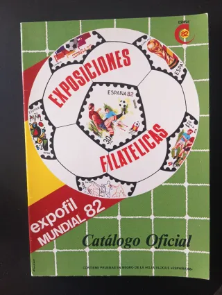 Lote de dos catálogos de sellos y 1 prueba en negro: 1. Catálogo de la Exposición Filatélica Expofil Mundial de España 82. 2. Catálogo de la Exposición Filatélica de América y Europa Espamer 80. 3. Prueba en negro de la emisión especial Espamer 80 y entrada a la exposición