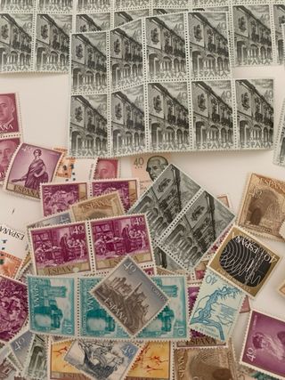 Colección de sellos de España. Son muchos sellos con imágenes variadas, algunos antiguos. - Sellos de diferentes épocas - Temáticas diversas: personajes históricos, paisajes, eventos... - Perfectos para coleccionistas o aficionados a la filatelia.