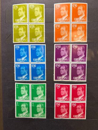 17 bloques diferentes de 4 sellos cada uno de la serie del Rey Juan Carlos de 1986. Nuevos e Impecables. perfecto para cualquier coleccionista de sellos. como regalo o para la coleccion personal o para venderlos por separado. Filatelia con sellos del Rey, sellos antiguos para coleccion en estado nuevo con su pegamento intacto. para coleccionistas.
