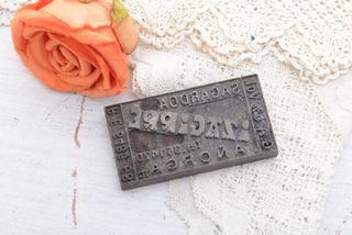 Este es un antiguo sello de la sidra del norte de España Izaguirre. Supongo que se utilizaba para hacer las etiquetas Medidas: Largo: 6 cm Ancho: 3,2 cm Profundo: 0,8 cm Peso: 101 g