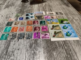 Colección de sellos antiguos y modernos de España. Algunos muestran señales de uso, pero en general están en buen estado. - Incluye una variedad de diseños y épocas. - Ideal para coleccionistas o aficionados a la filatelia. - Se venden un total de 30 sellos.