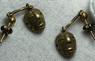 Pareja de pendientes con rostros de la cultura Tayrona de oro tumbaga realizadas con la técnica de la cera perdida, muy bonitas piezas precio por todas buena oportunidad, artesanía colombiana. Regalo además un fósil de diente de Otodus Obliquus el antepasado del Megalodón Piezas legales comprada a profesional con factura Entrega en mano en Málaga o envío a toda España. Más lotes similares en mi perfil *No mirar* Monedas antiguas, numismática, lote monedas de plata coleccionismo pesetas duros oro antiguas moto circular limpiar subasta oportunidad moneda chimenea cadena metales sellos