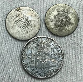 Lote de tres monedas de plata compuesto por cincuenta céntimos del 1910 de Alfonso XIII de y dos piezas de medio real de Carlos III y Fernando VII de plata todas, precio por las tres buena oportunidad Entrega en mano en Málaga o envío a toda España. Más lotes similares en mi perfil *No mirar* Monedas antiguas, numismática, lote monedas de plata coleccionismo pesetas duros oro antiguas moto circular limpiar subasta oportunidad moneda chimenea cadena metales sellos llaveros fósiles militar coche piso fusil guerra civíl pieza garaje puerta navidad lluvia paraguas pc blackfriday arbol pino patinete enchufe regleta amazon escultura