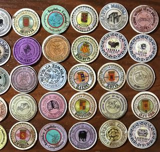 Lote de cincuenta monedas de uso provisional durante la segunda república de los pueblos de Madrid, de Valladolid, de Alicante, de Guadalajara etc precio por todo el lote Entrega en mano en Málaga o envío a toda España. Más lotes similares en mi perfil *No mirar* Monedas antiguas, numismática, lote monedas de plata coleccionismo pesetas duros oro antiguas moto circular limpiar subasta oportunidad moneda chimenea cadena detector metales sellos llaveros fósiles militar coche piso fusil guerra civíl pieza detector garaje puerta