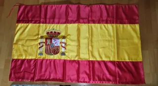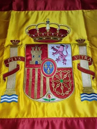 Gran bandera españa de 1'55 oficial de despacho de cuartel militar ,en seda raso de gran calidad escudo bordado Impecable insignia rey emblema condecoración división azul franquista franquismo distintivo alemania alemán hitler segunda mundial borgoña Juan Carlos Andrés cruz antiguo vintage uniforme laureada falange reyes católicos Isabel Fernando yugo flechas felipe Alfonso trece permanencia ifni Sáhara misión 1936 año40 carlista requeté numismática filatelia sello moneda colección coleccionismo recreación general tropa soldado ONU OTAN ejército tierra mar aire sargento capitán dictadura pin armada guerra civil arma tercios medalla