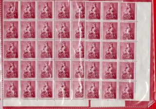 Conjunto de sellos de España con valor de 10 céntimos, conmemorativos del Año Mariano.pliegos y minipliegos del año de la guerra civil. - Diseño de la figura de una santa. - Borde con perforaciones. - Texto 'ESPAÑA CORREOS AÑO MARIANO'.