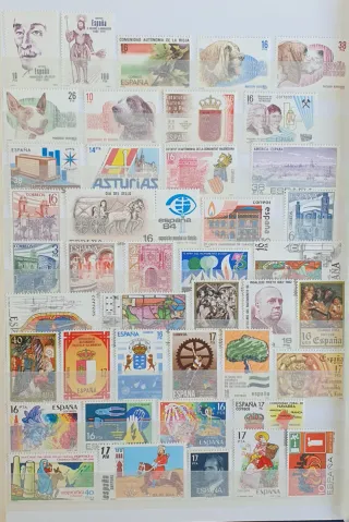 Álbum de sellos de España, cubriendo el periodo de 1958 a 1982. Se encuentra casi completo, ofreciendo una excelente oportunidad para coleccionistas. - Incluye sellos de Reproducciones de cuadros de Goya de 1958. - Contiene sellos conmemorativos de la Exposición Universal de Bruselas de 1958 y 1959. - Presenta sellos de Sellos conmemorativos de la Exposición de Bruselas de 1958.